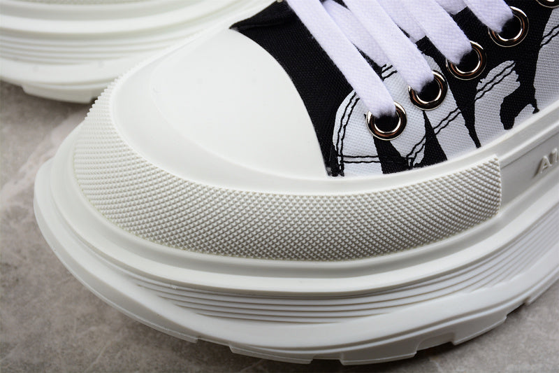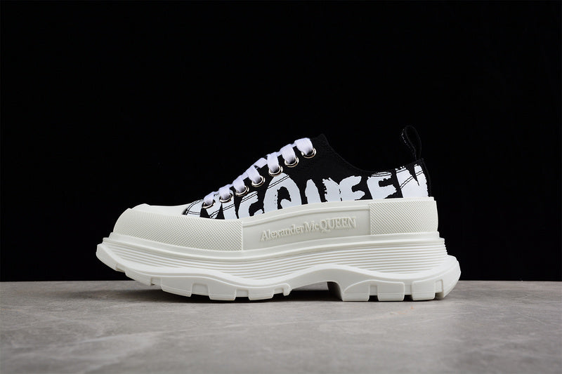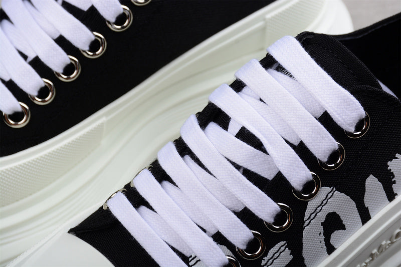 Alexander McQueen Tread Slick Low Lace Up Canvas Graffiti White Black