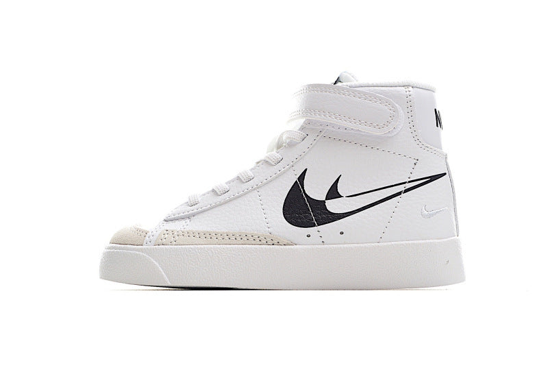 Kids Nike Blazer Mid White Black Double Nike Emblem